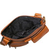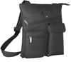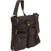 Tip opening with inside zip pocket. Large front snap pocket with front zip pocket. Flap pocket closes with magnetic snap. Zip around organizer pocket has inside and front zip pocket, ID window and card slots. Zippered pocket on back. Adjustable shoulder strap.
