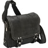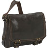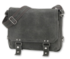 Messenger bag closes with snap buckles. Inside section for laptop. Front flap closes with snap buttons. Adjustable web strap with leather applique.