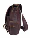 Messenger bag closes with two front snap buckles. Inside section for storage. Adjustable strap.