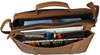 This porthole brief has everything the modern business person needs for work. Specifically designed for your laptop or notebook computer with a padded main section and disk pockets. There's also convenient organizational features like four card slots, and pen and calculator holders. Two pockets on the back of the flap and an inside zippered pocket. The rear open pocket is perfect for loose papers or a newspaper. Adjustable, removable shoulder strap and top loop handle. Double magnetic snap closures.