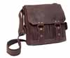 Messenger bag closes with two front snap buckles. Inside section for storage. Adjustable strap.