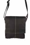 A medium sized messenger bag in a simple style. Features a 3/4 flap with a magnetic snap. This bag also has zippered pockets on the front and on the back. A wide, adjustable shoulder strap is included.