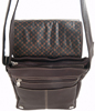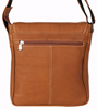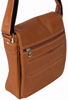 A medium sized messenger bag featuring a flap that closes with dual magnetic snaps. There are zippered pockets on the front and on the back. It also has a zip pocket on the flap and an open pocket on the front. A wide, adjustable shoulder strap is included.